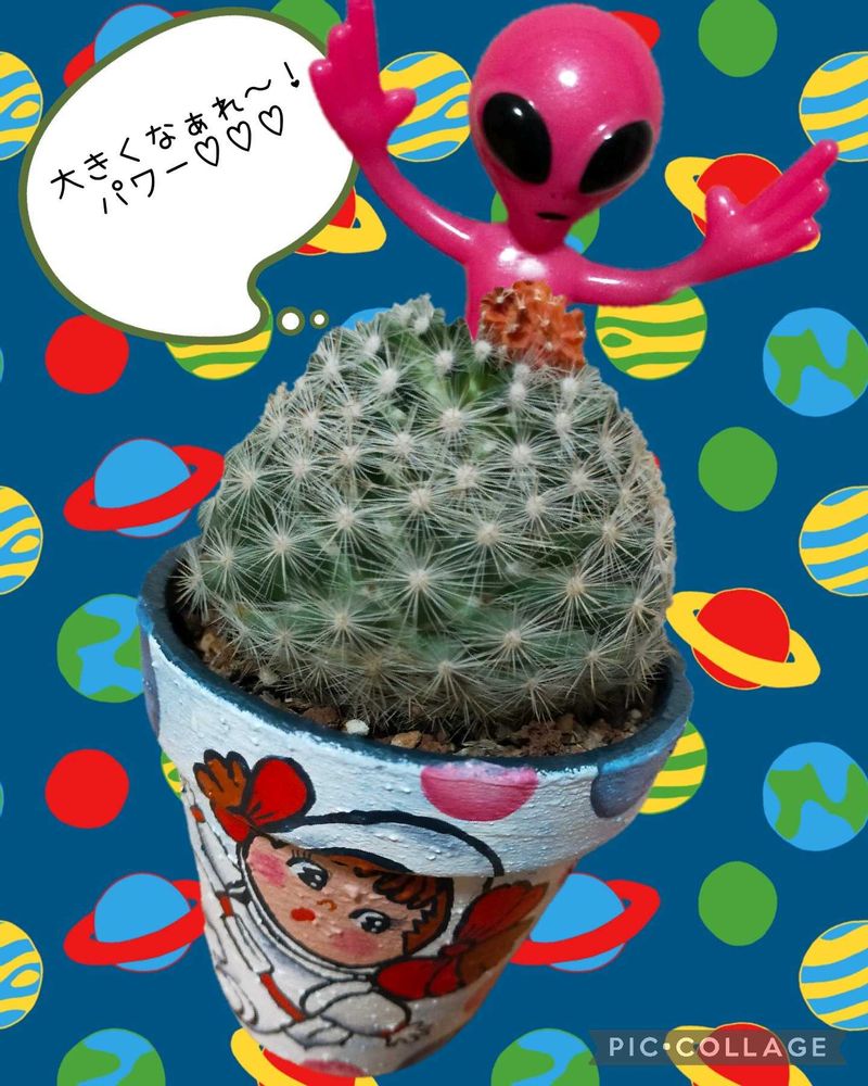 みたりん産宇宙服ペコちゃん鉢と満月(サボテン)と緋牡丹の生き残り!他のお子ちゃまと下のサボテンは腐れ神にやられてしまいました〜🥲︎💦