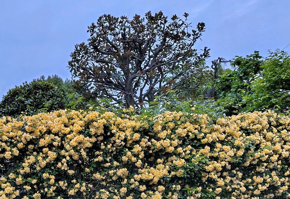 木香薔薇と泰山木、絵になる風景に出会いました。泰山木が咲く頃また歩きたい道です。散歩は楽しいですね🍀