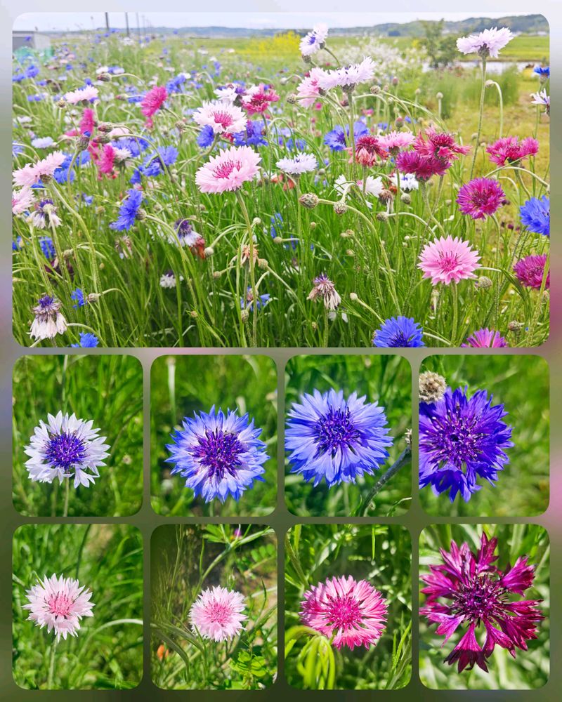 今年も畑の矢車草が咲きました。規模2倍なっていたので、菜園の人からクレーム 種が落ちるまで我慢😣