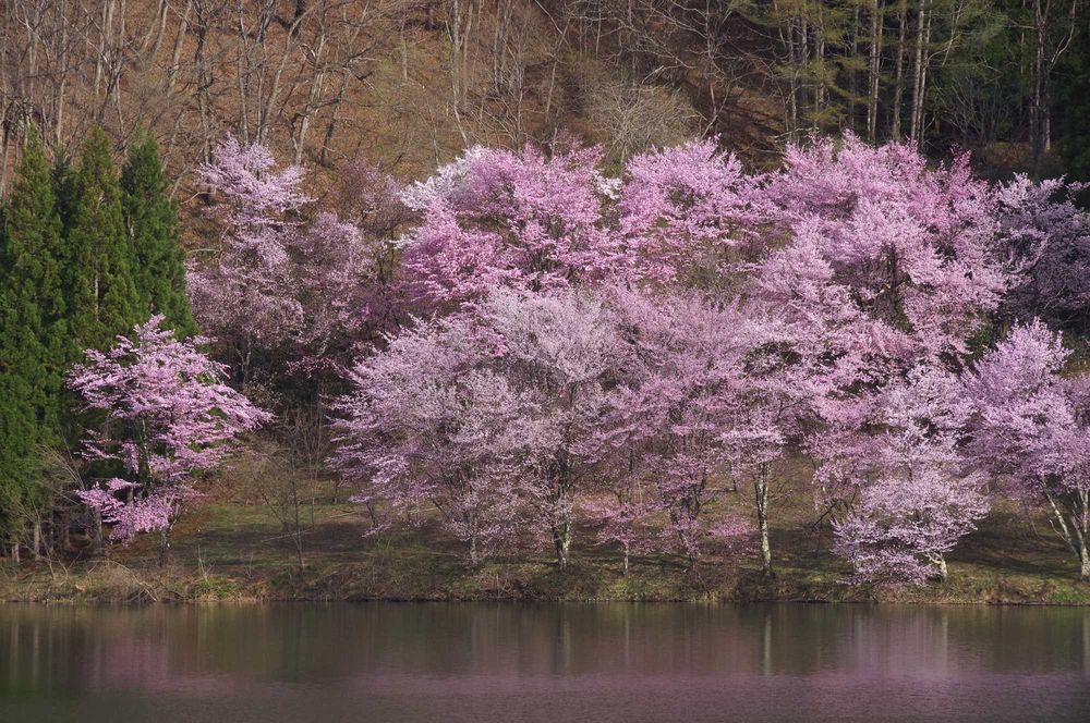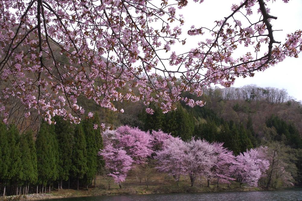 湖に大山桜の映える中綱湖、今年も見に行って来ました✌️