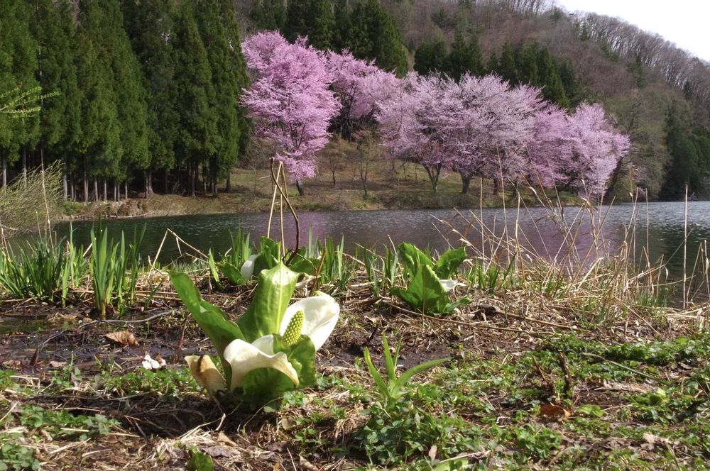 桜と水芭蕉のコラボも珍しいかと思いパシャリして見ました📸