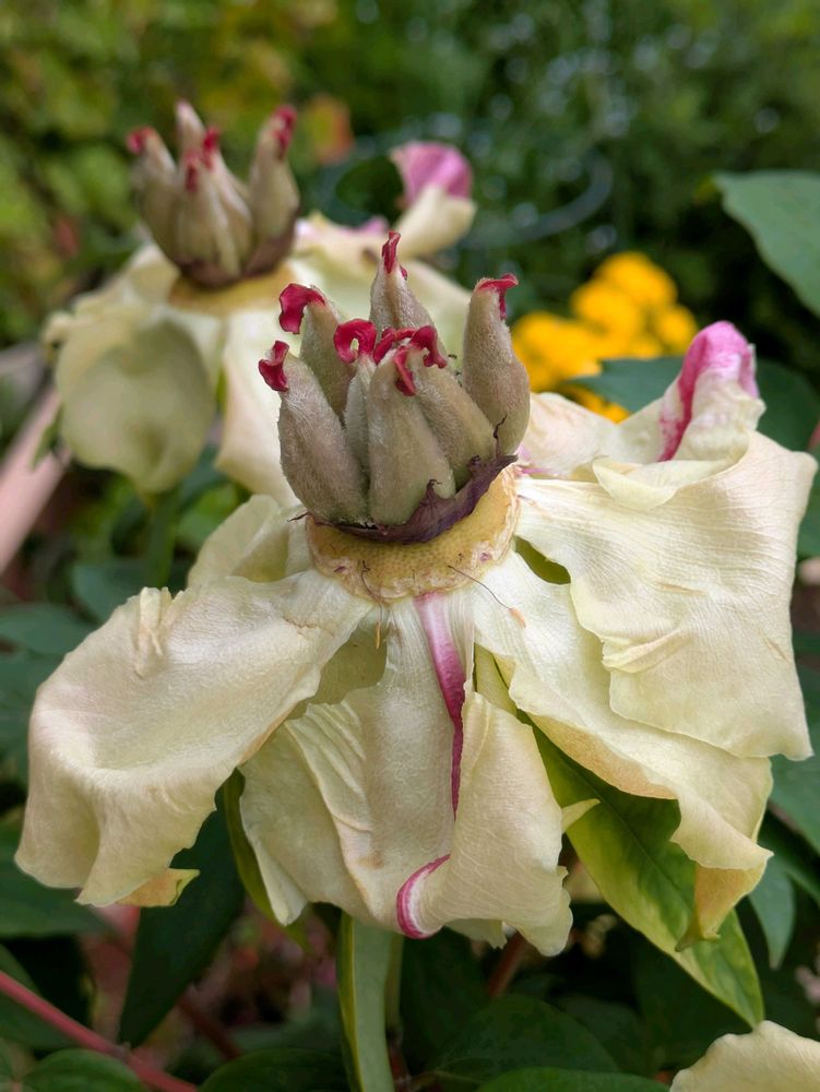 お花が散ったあとの萼が赤くなって 緑の実が黒くなり ミッキーさんになることを知りました🐭