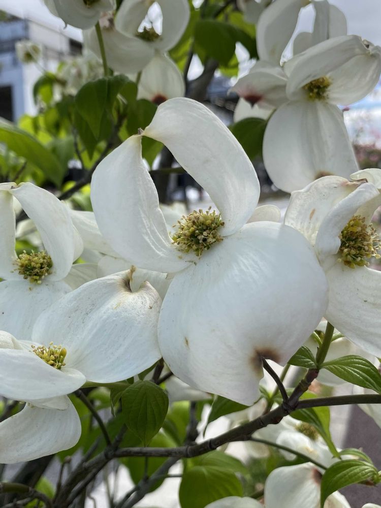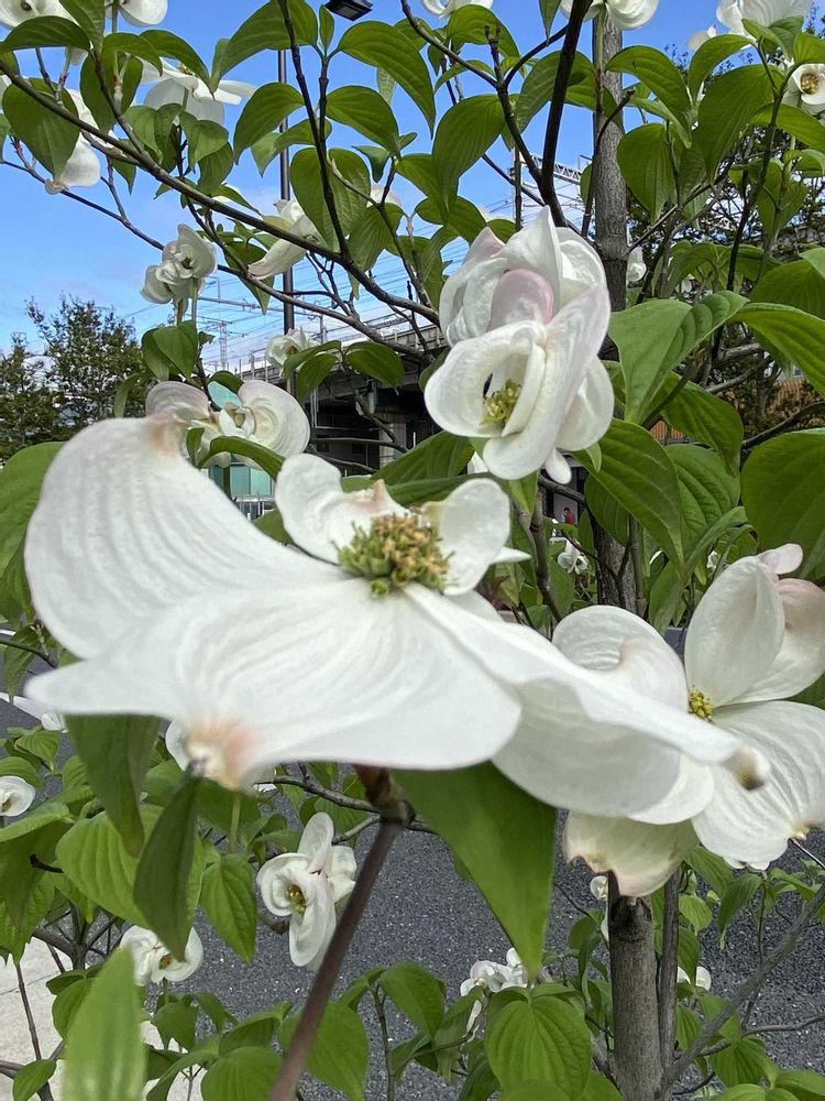 今日のお花ハナミズキが4月24日、JR京都駅前(八条口)で咲いていました。👍👍