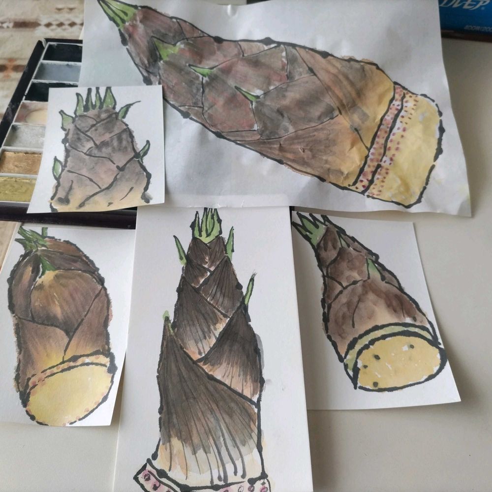 絵手紙はタケノコを描く。旬の味は美味しかったです