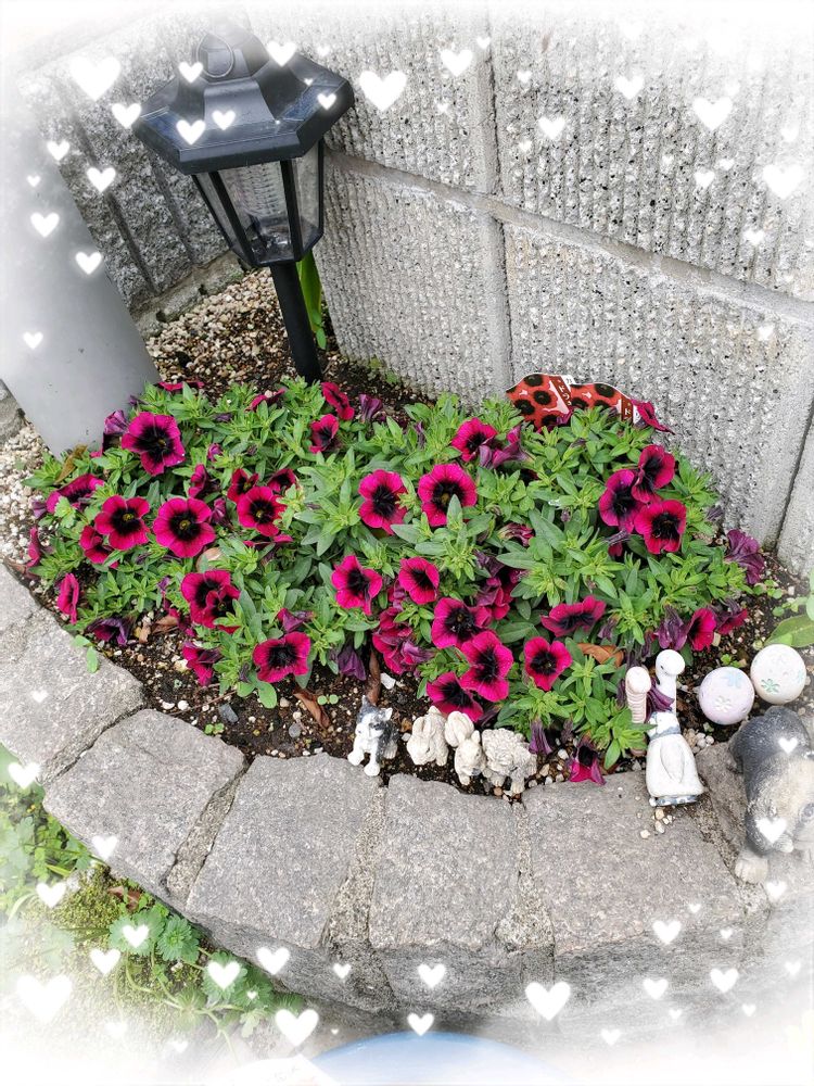 先日門扉の花壇に植えたカリブラコアドラキュラが沢山の花を付けました~🎶