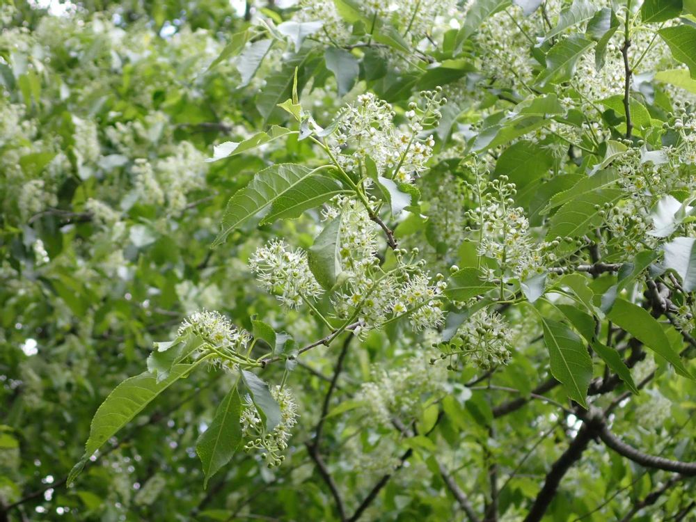 近所のウワミズザクラを見に行ったら 花は終わり青々と葉桜になってました