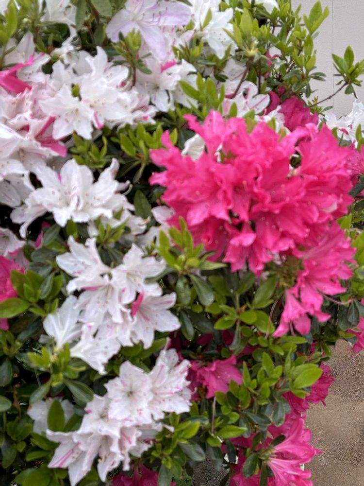 三色のツツジが一ヶ所に植っていて、咲き分けのように見えます🎶