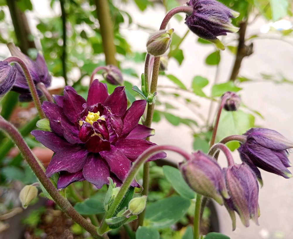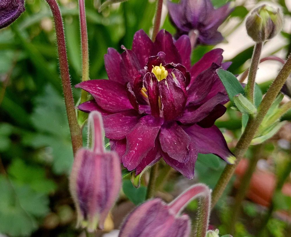 🍀富山の花友さんから頂いたオダマキの種〜開花しました。残念ながら、開花に辿りつけたのはこのコ💜だけ🥹。でも好きな色なので 嬉しいです