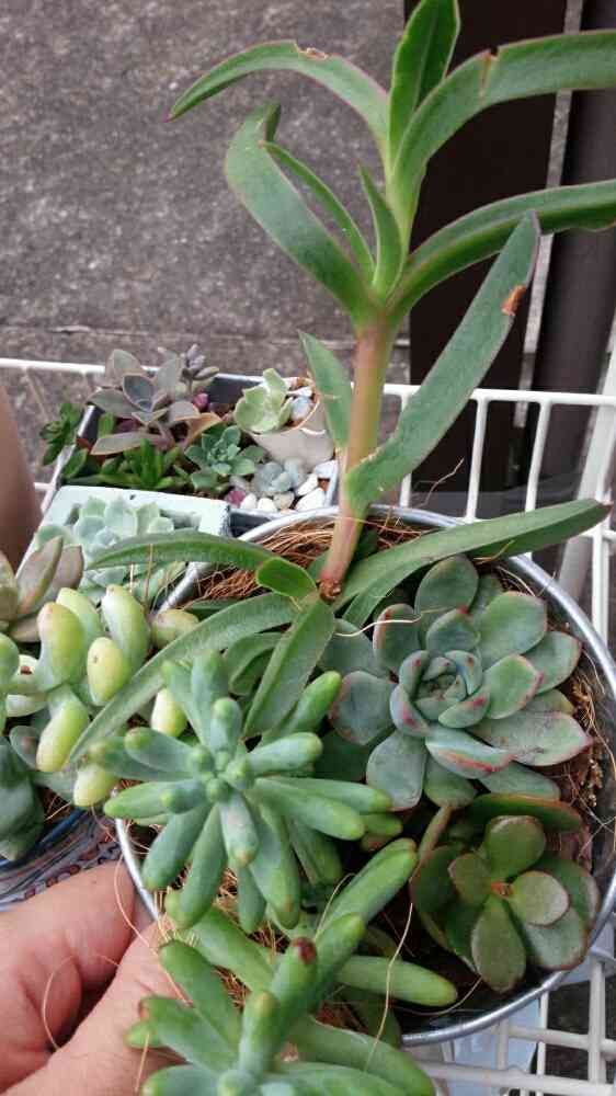 この子なのですが、シレッと寄せ植えに参加していますがお名前も不明で、シロウトの私には属名すら分かりません┐(´д`)┌確か我が家に来た時はフチかなんかがピンクに紅葉していました💡