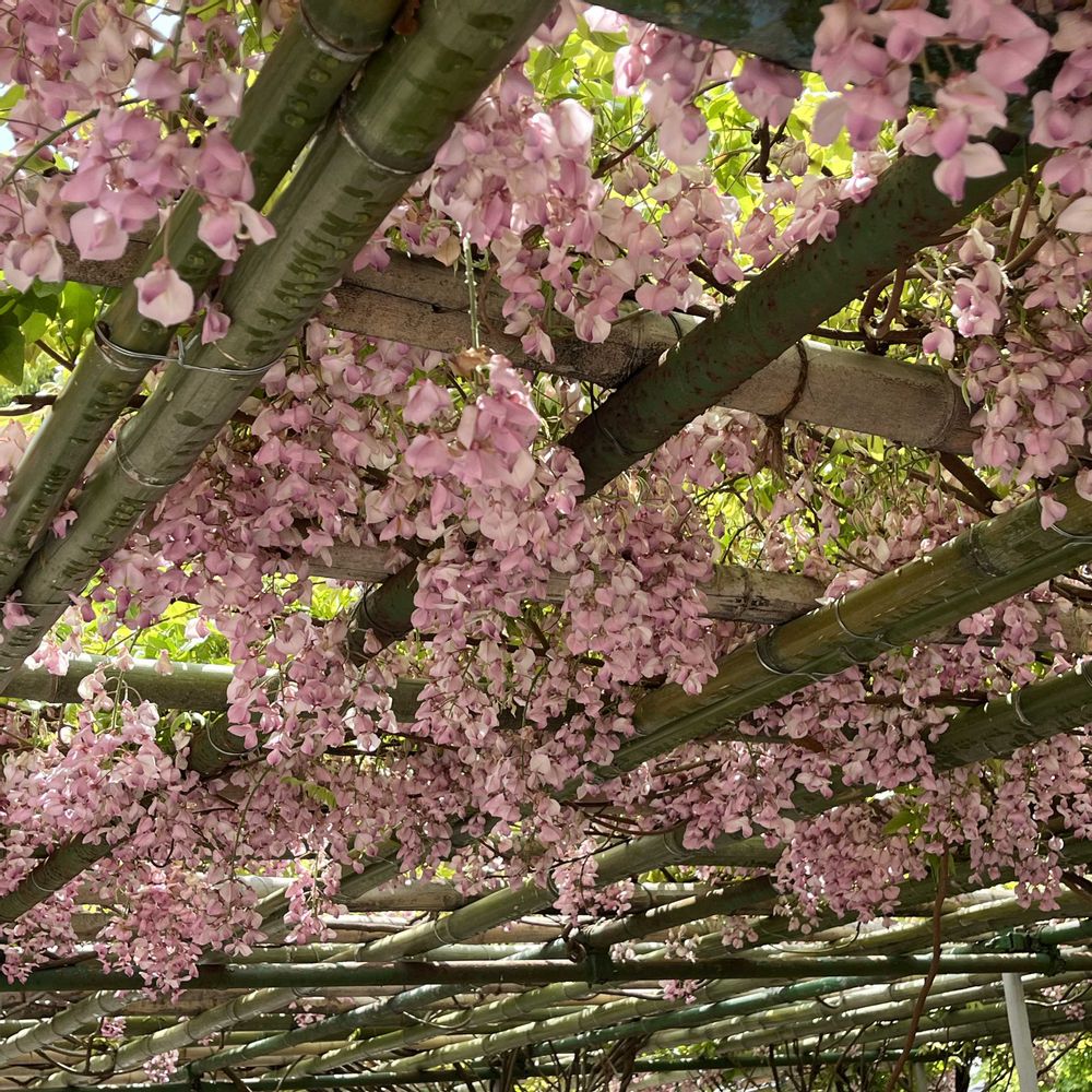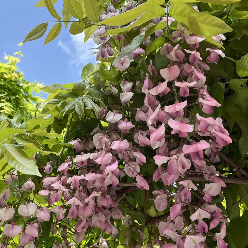 花美短(かびたん)と呼ばれ、紫の藤より早咲きで、花の丈は短いけれど、咲いてる期間は長いそうです🩷🩷🩷