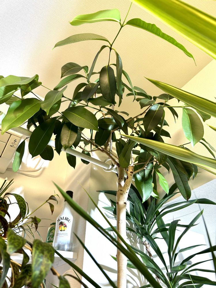 育成記録😊アマゾンオリーブ🫒もう直ぐ天井に着きそうです〜😊春で新芽☘️がたくさん出て来た😊白い幹に一目惚れでした🤩