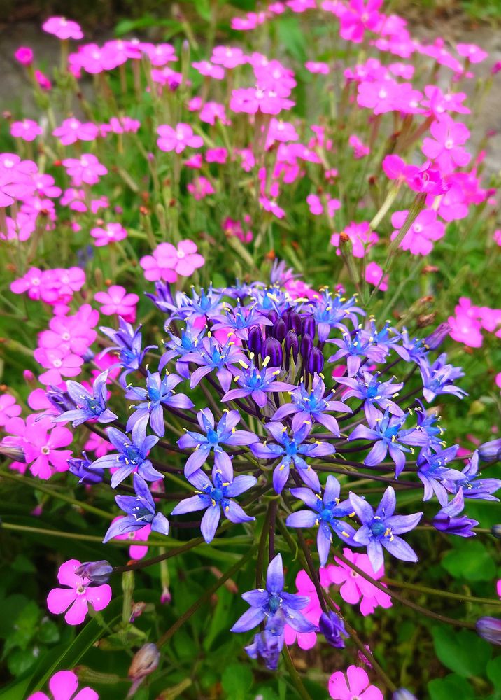 my Garden🌼念願のシラー・ペルビアナさんがたくさん咲いてくれました👏✨️去年ご近所さんから球根を七つ譲って頂いて、大切に見守り育てていました😄🎶たくさん増えるそうなので、今後に期待大です😍🩷シレネ・ピンクパンサーちゃんもこぼれ種でじゃんじゃん増えてね〜😉💨