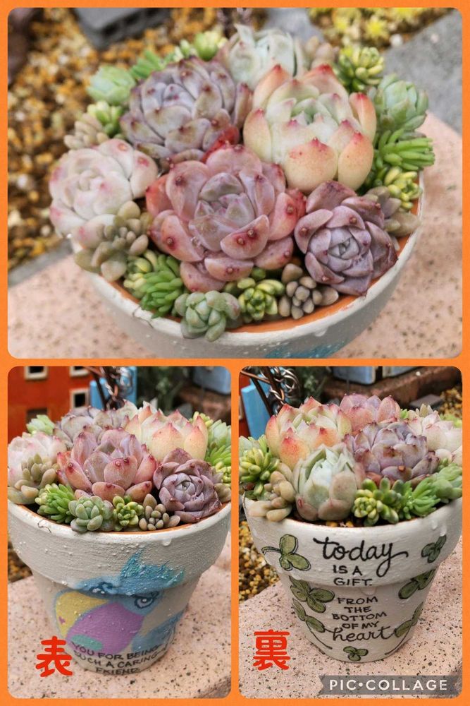 どちらも可愛いので、どちらから見てもいいような、寄せ植え🥰に、したつもり🤔❓です‼️