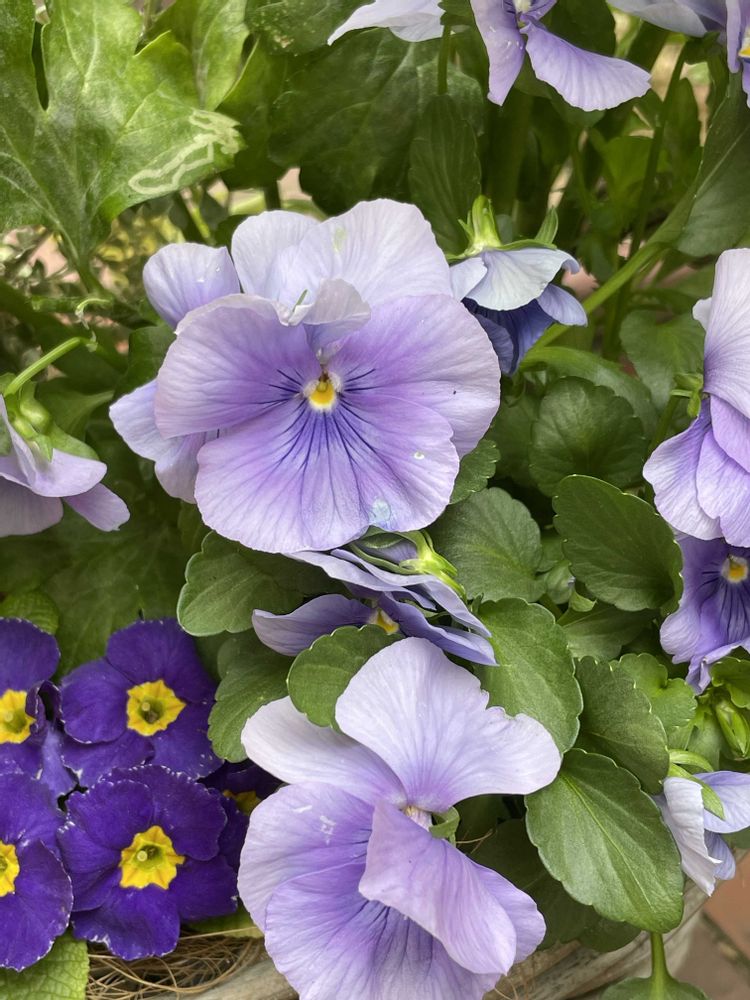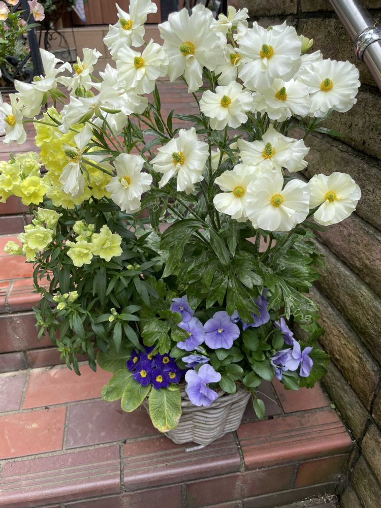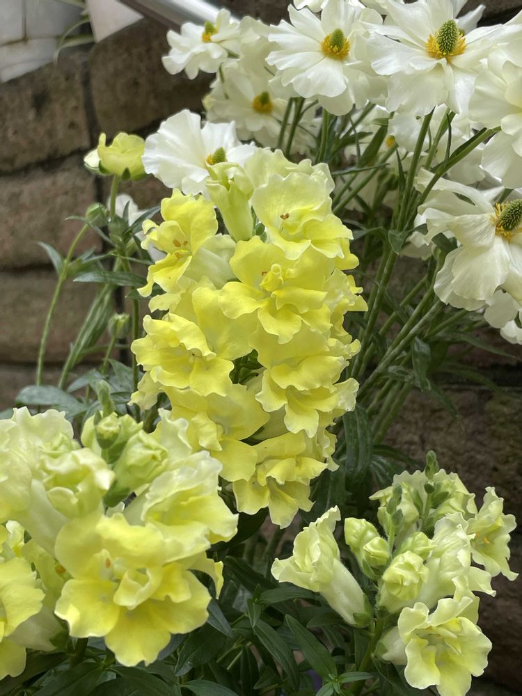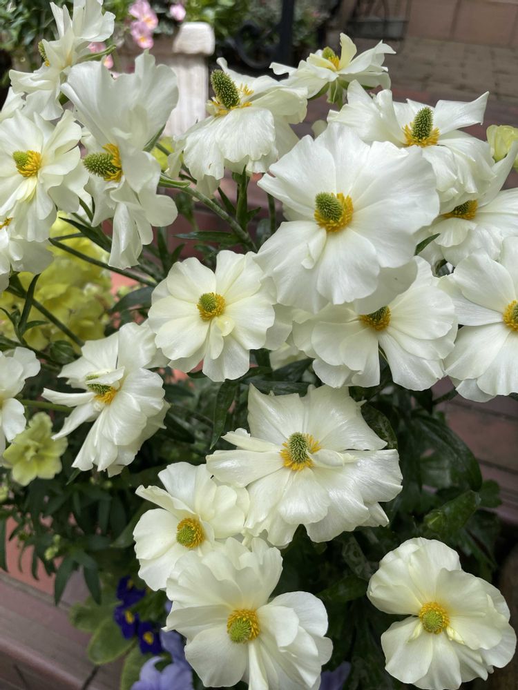 ラナンキュラス ラックス ヘスティア🌿 ブルー系のビオラとジュリアンはもう盛りは過ぎましたが レモンイエローの金魚草トュイニーはモリモリです🍀*゜