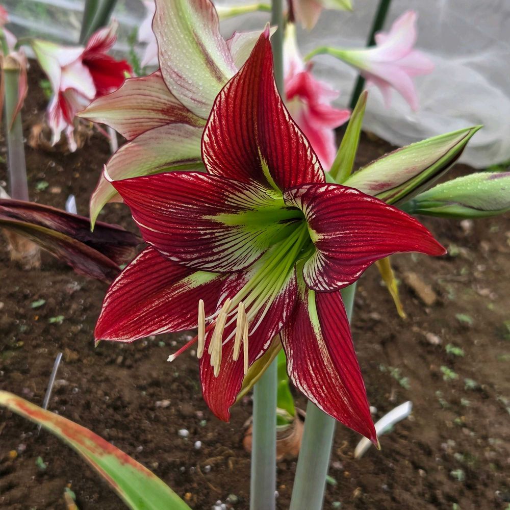 小森谷ナーセリーさん作出のアマリリスが開花しました!赤とグリーンの独特な配色がめちゃめちゃ好みです😍😍