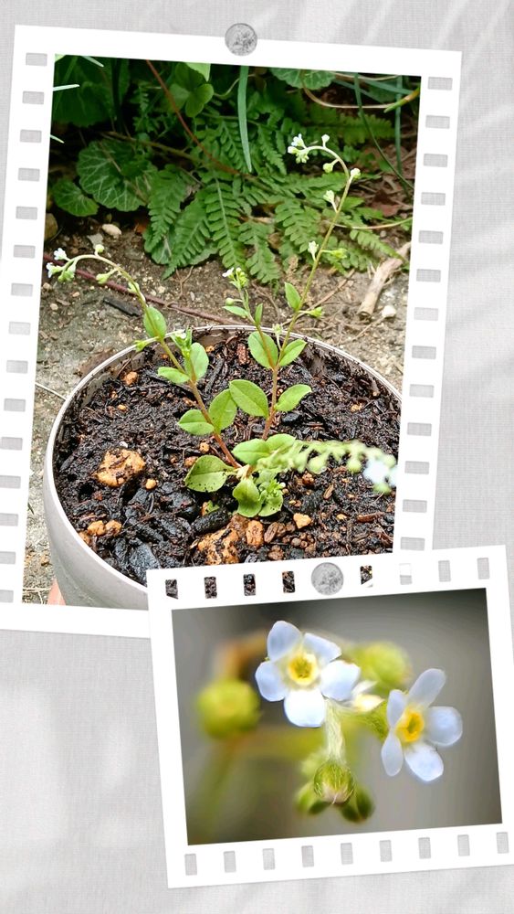 忘れな草に似た花が咲いていて…それにしては小さなお花なので、Googleレンズで調べてみたらナヨナヨワスレナグサと出て来ました で、ナヨナヨワスレナグサとググったら、似た花でキュウリグサと出て来て…😵💫