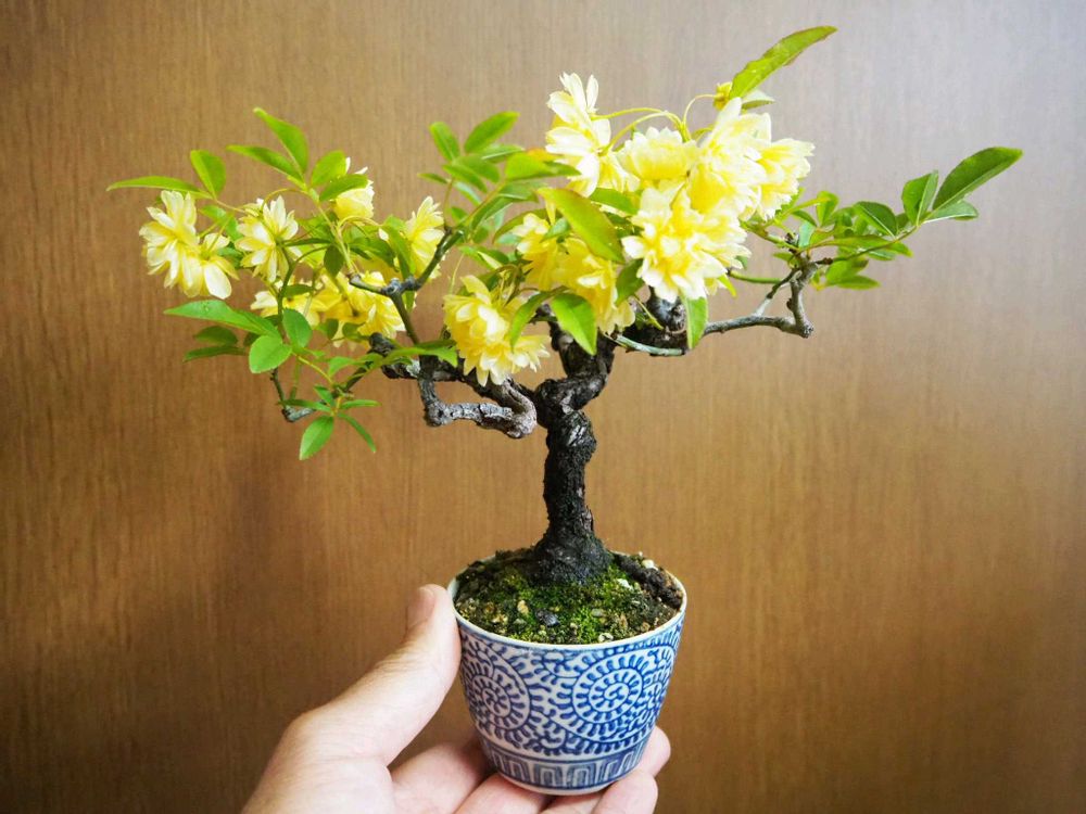 モッコウバラの盆栽仕立て、全く頭になかったです。フェンスに這わせるイメージしかなくて。とっても良いものですねぇ。