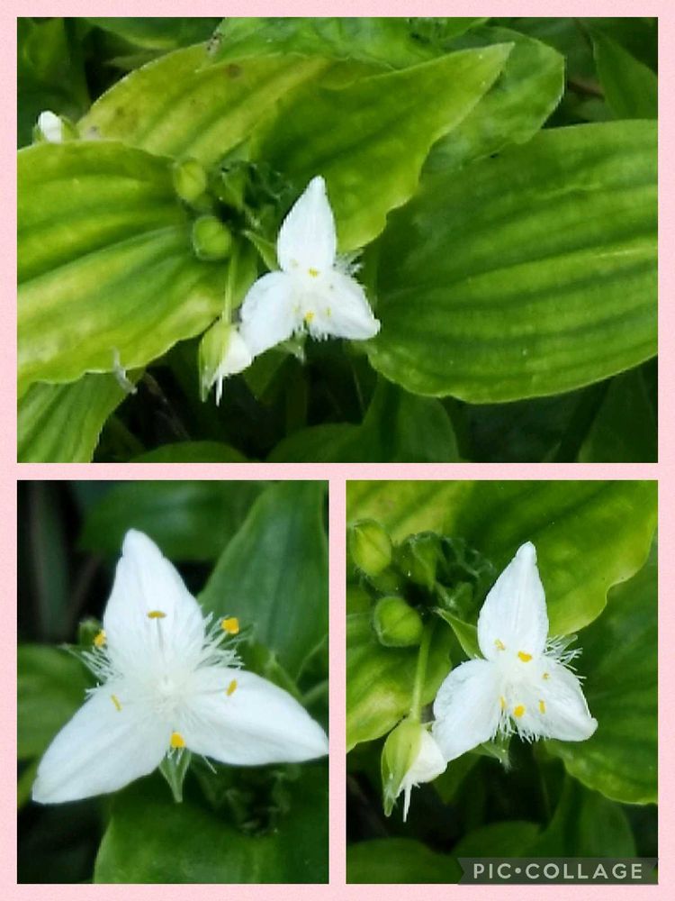 ( *ˊᗜˋ)ノこんにちわꕤ*.゚白いツユクサ素敵ですネ🩷