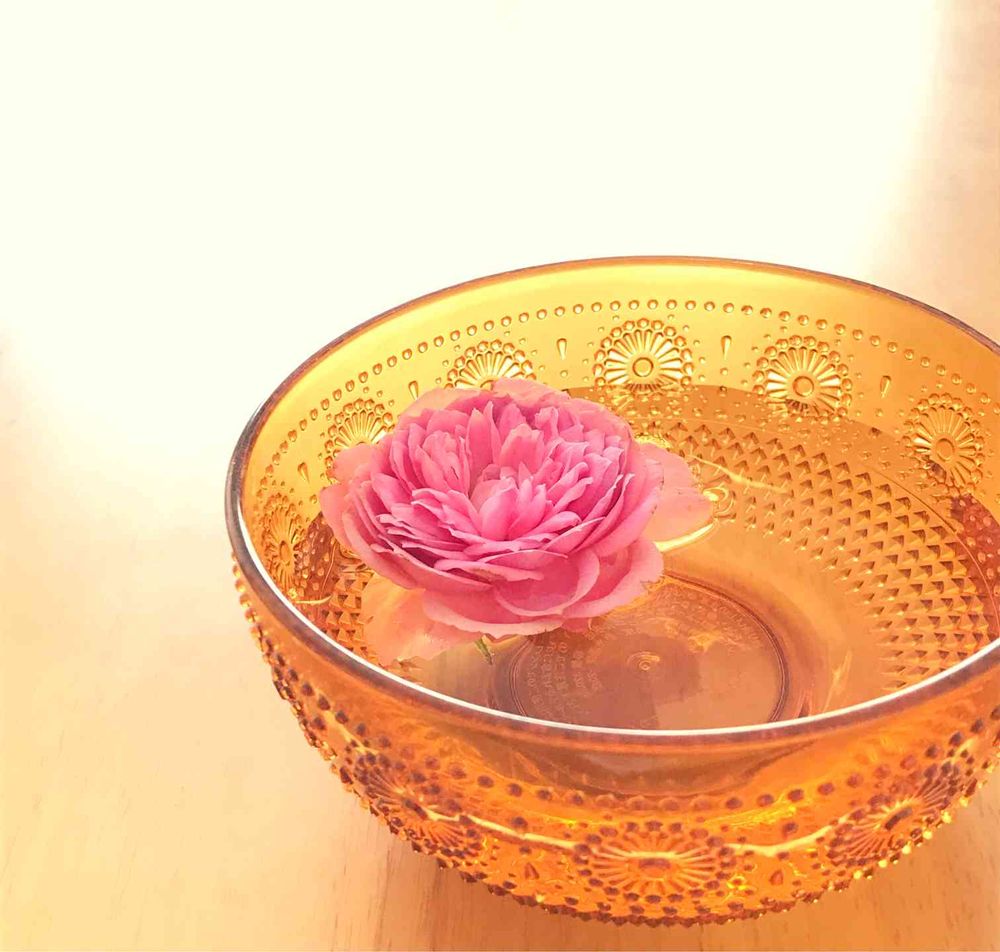 バラの茎がしんなり折れてしまったので、お花の部分だけ切って水に浮かべました。