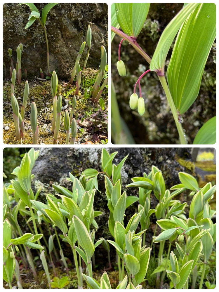 斑入りの葉っぱが涼しげで、葉のつけ根に1〜2個、長さ2cm位の緑白色の花をつけます😊