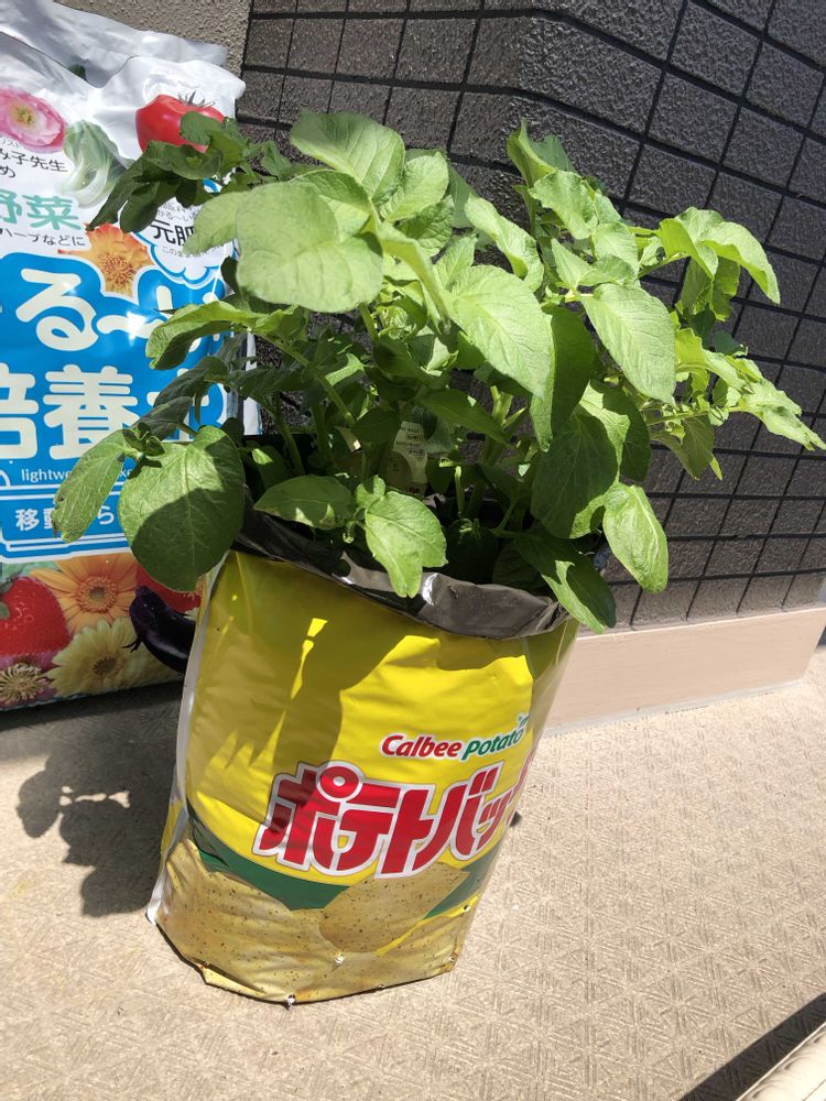 カルビーポテトパッケージジャガイモ🥔の芽かきしました。成長が早いです。