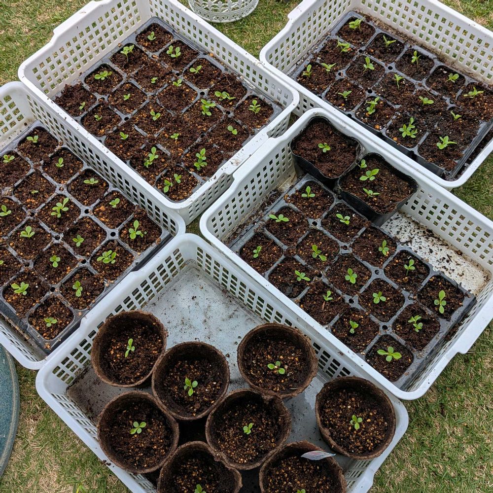 本葉が出て来てピートバンでは狭そうになったので、ポット上げしました