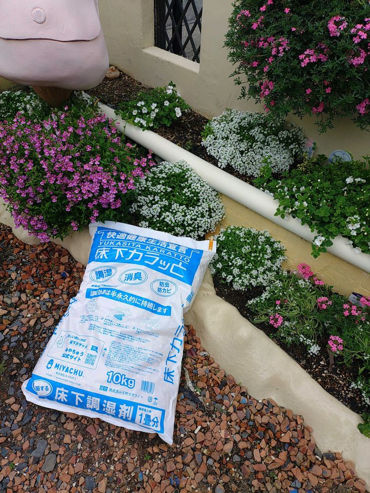 ホームセンターで マルチ材になる ゼオライトを購入 これ床下湿気調整として資材コーナで売ってます。
