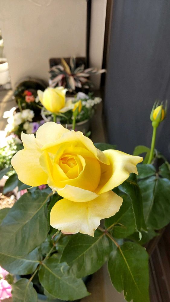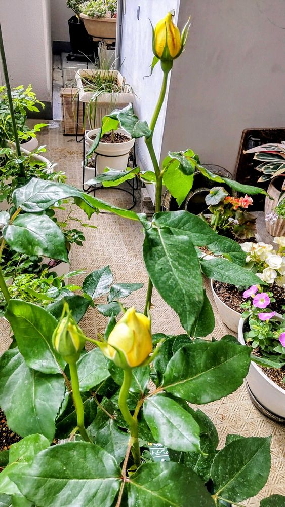 さんこんばんは😃🌃 見ていただきありがとうございます バラは 初心者です 迎えてみると 開花していく様子を見てると なんだか ウキウキしてきます 他のバラのつぼみも 膨らんできています バラの季節ですね💕🤗