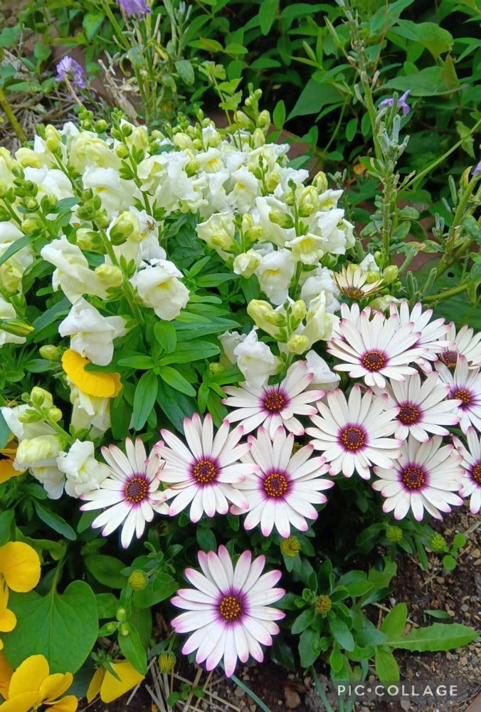 3年目のキンギョソウ、花がモリモリと咲いてオステオスペルマムを押しています😃🌸🌿