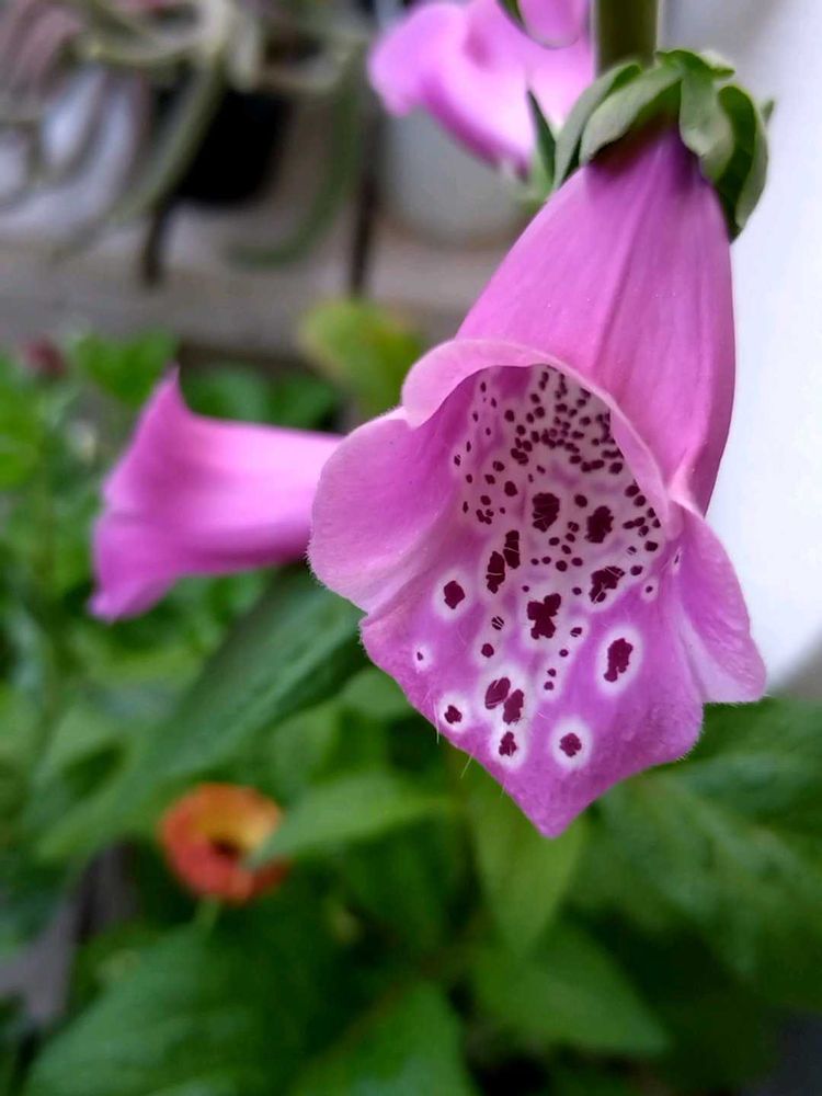 種まきっ子のジギタリス🌱初めて育ててますが、ジギタリスってこんな模様の花なんですね😳ビックリ💖