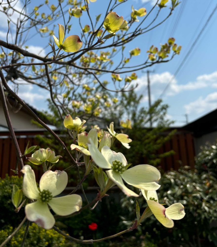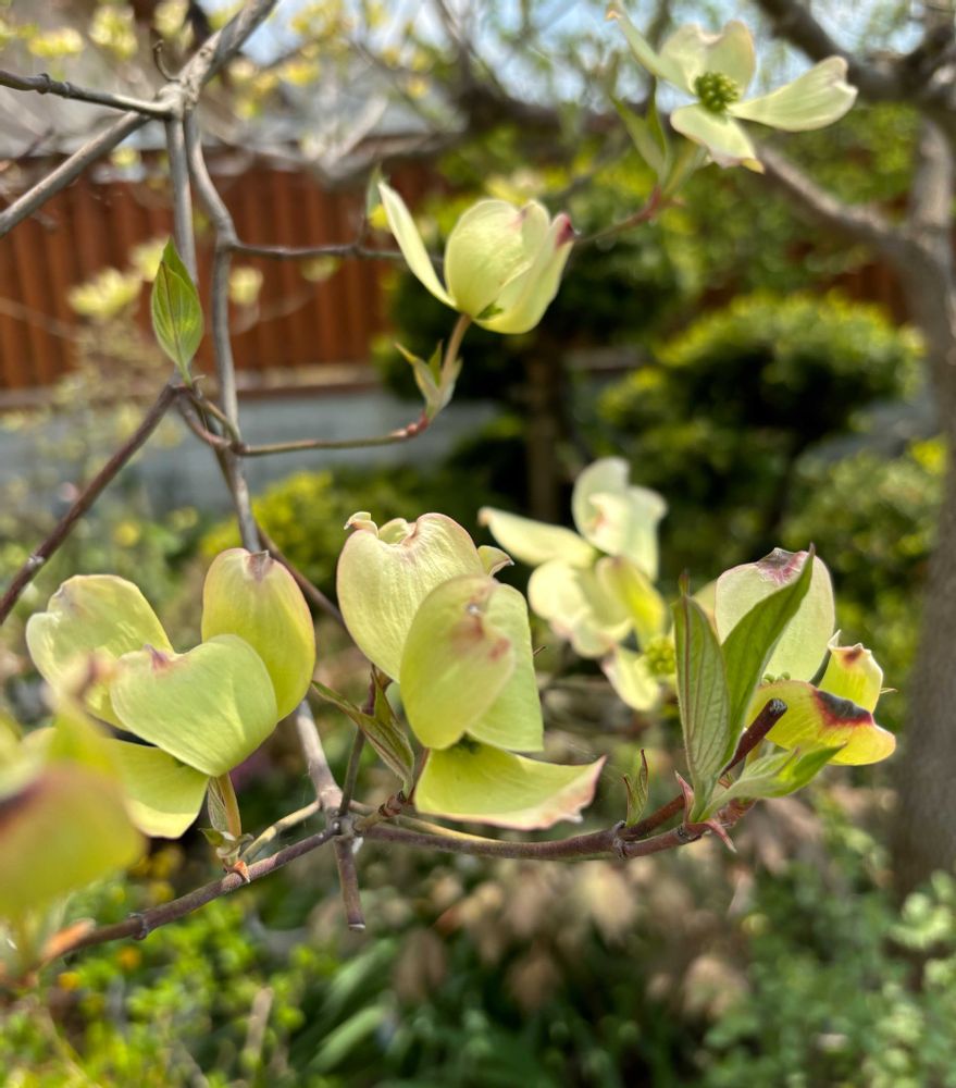 庭のハナミズキは白色🤍🤍なんだけど、今は黄緑色💚です。
