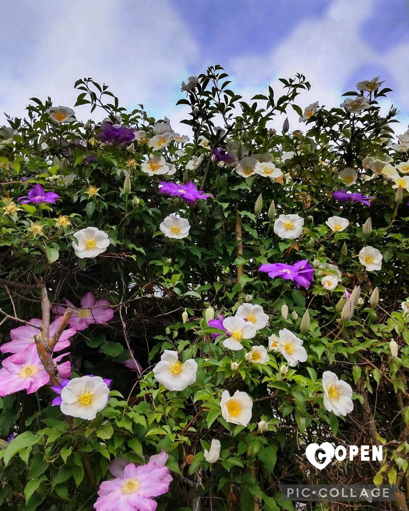 クレマチスとナニワイバラの組み合わせは初めて見ました😊