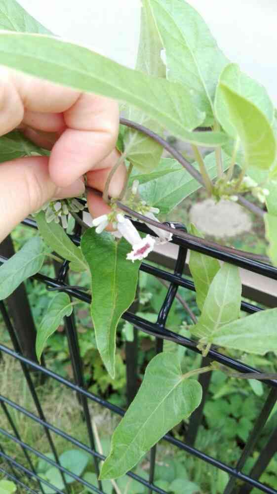何の花かわからずフェンスに絡ませて育て続けてたら咲いたんですが、これ何でしょうか?