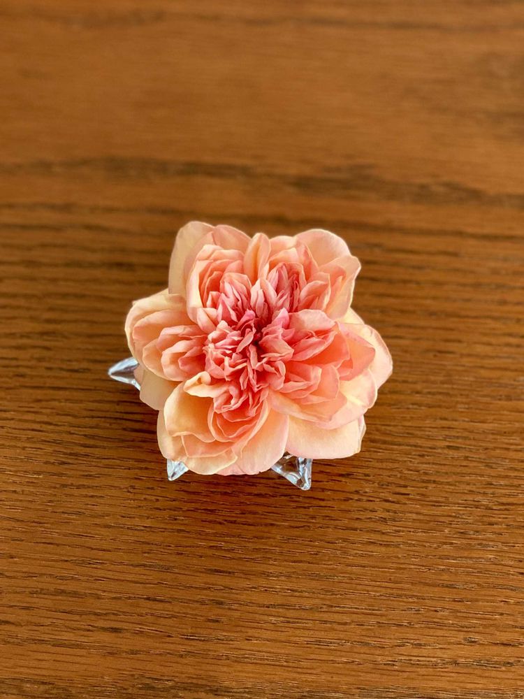 昨秋に新苗の状態でお迎えしたクレメンティナさん。今春は一番花が開きかけたところを摘み取って一輪挿しにしました。花径は10cmくらい。トゲの量は少ないと予想していたけどまあまあ普通にありました。暖色のグラデーションが素晴らしい上に花持ちもgood!!!!