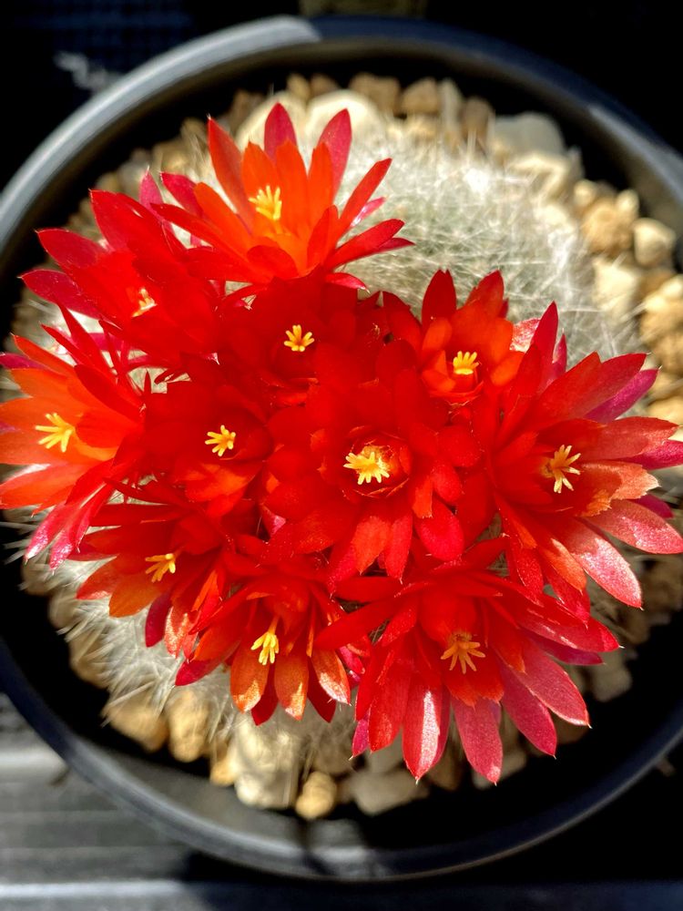 赤オレンジ色の花が白いサボテンに映えてとても綺麗です🏵️✨