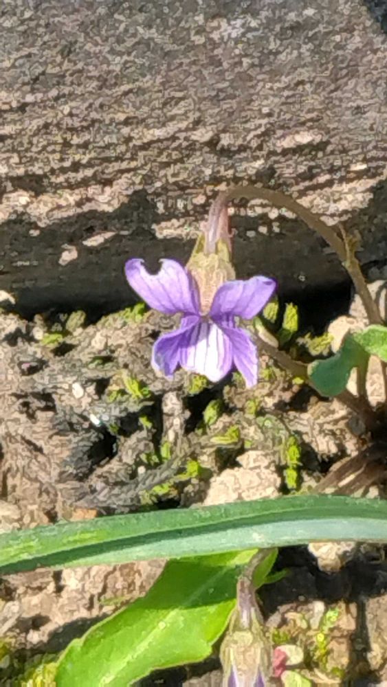 コンクリートの割れ目から、小さいスミレがひっそり咲いていました✌🥳