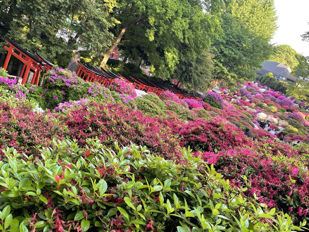 4/26 雨上がりの根津神社のつつじ祭り💕いつもはくぐり通り抜けるだけの千本鳥居を見下ろせます。つつじの丘は圧巻でした😍