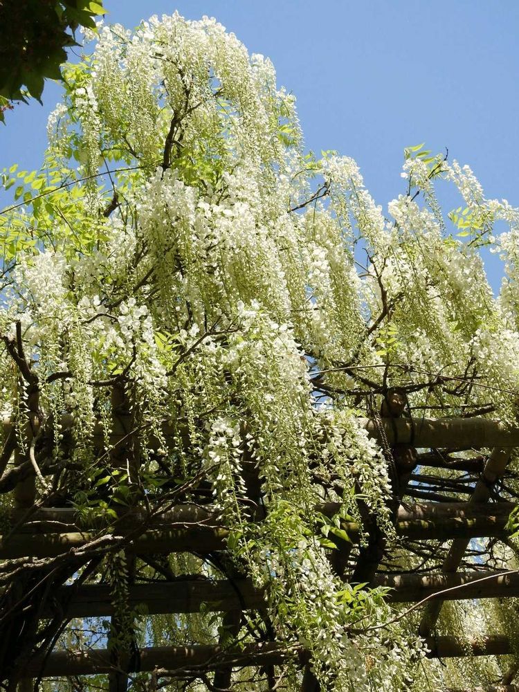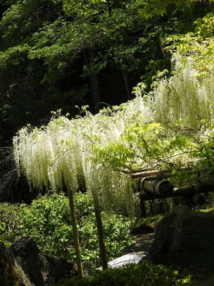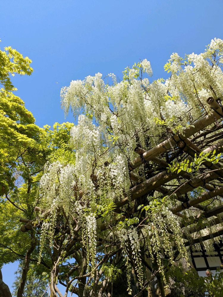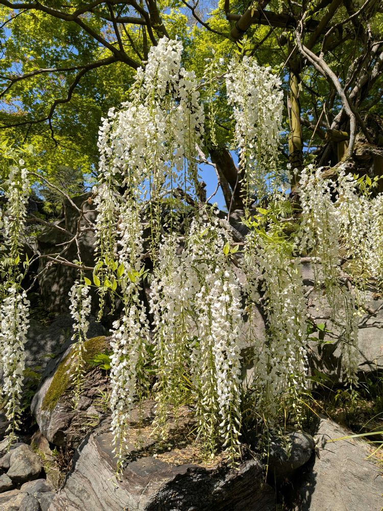 石組みの庭園と白藤と青空が見事な風景を作ってました✨タイミングが良かったですね〜🤓🙌