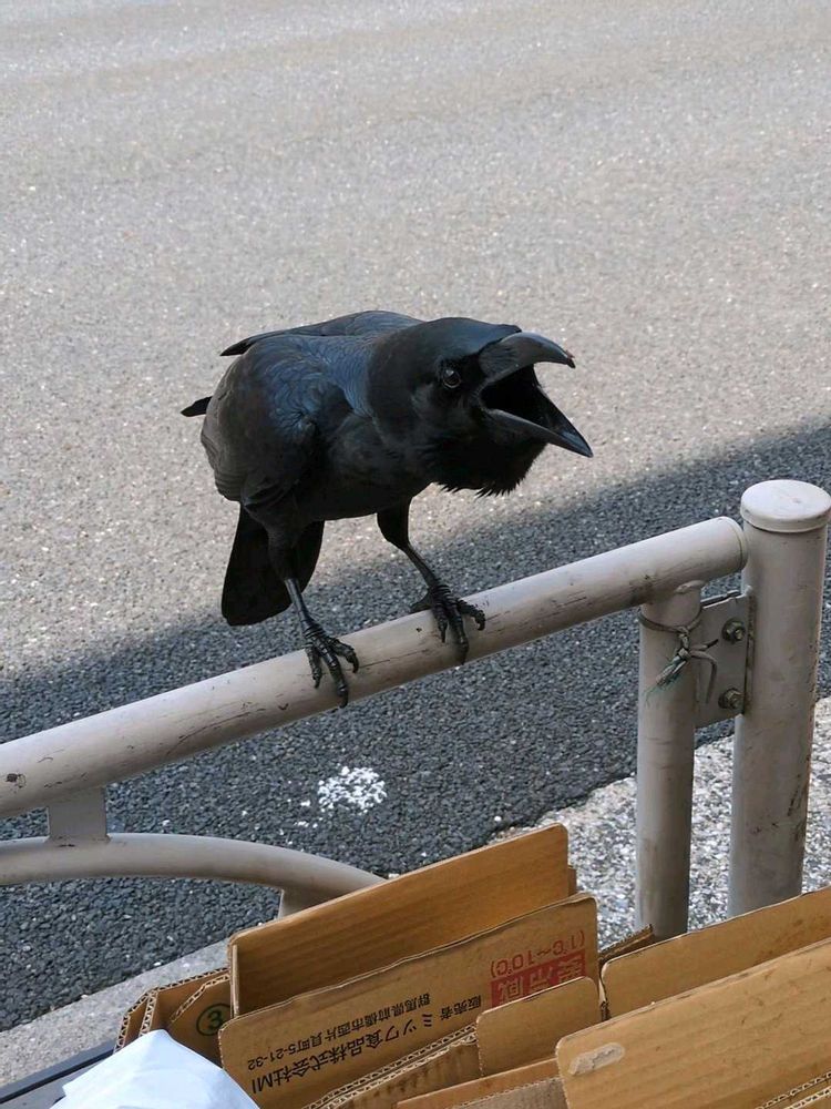 ゴミ漁っていたので〜あっちへ行け〜だと…🐦⬛