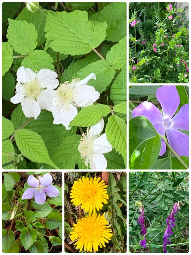 くさいちご🍓カラスノエンドウ、ツル日々草、ナヨクサフジ、タンポポ、すみれさん