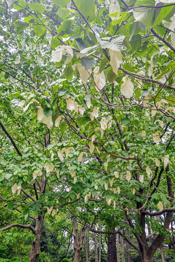 想像以上に大きなハンカチの木に白いハンカチの花がゆらゆら下がってました。