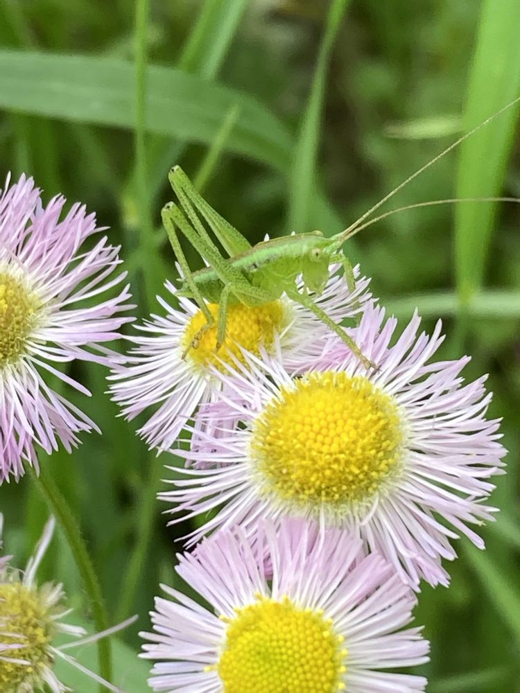③ハルジオンにキリギリスの幼虫が可愛い過去picです🦗💞