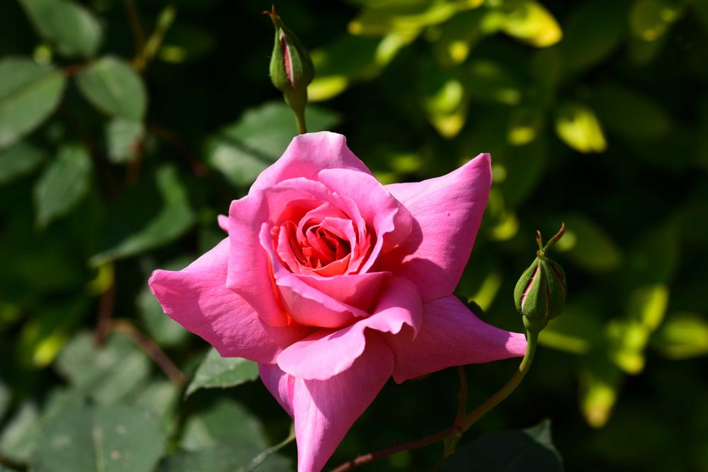 鮮やかな桃色が朝陽を浴びて引き立つ
