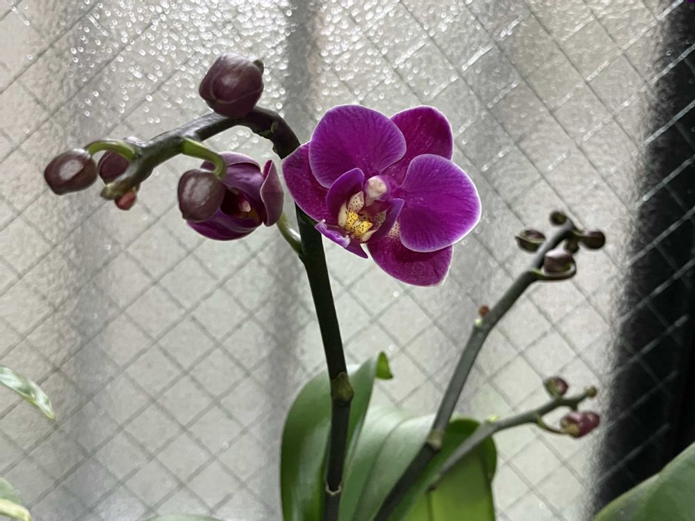 胡蝶蘭 3本も 花芽が❗️すごいですね~😍気品ある色💜