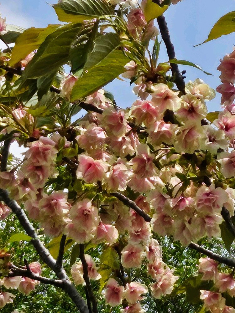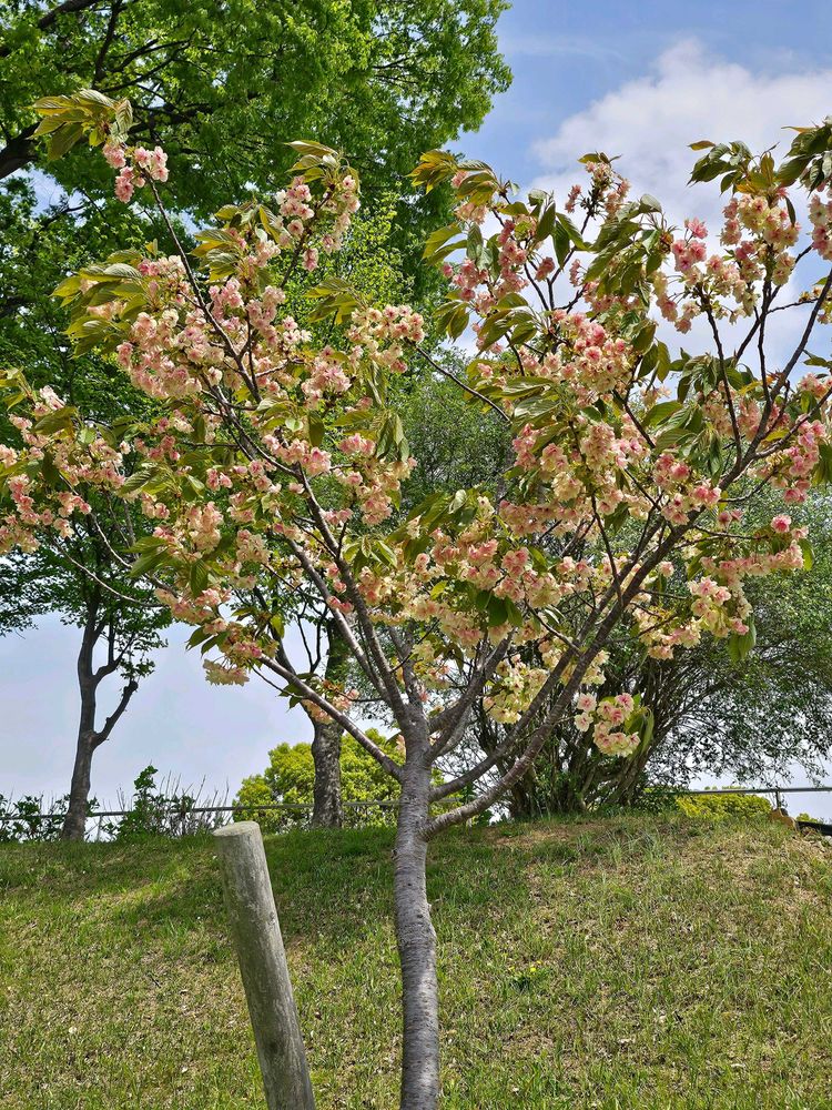 シロトピア記念公園の八重桜も、そろそろ終わりみたいろ木の根元が、落ち花弁で覆われてましたョ‼️