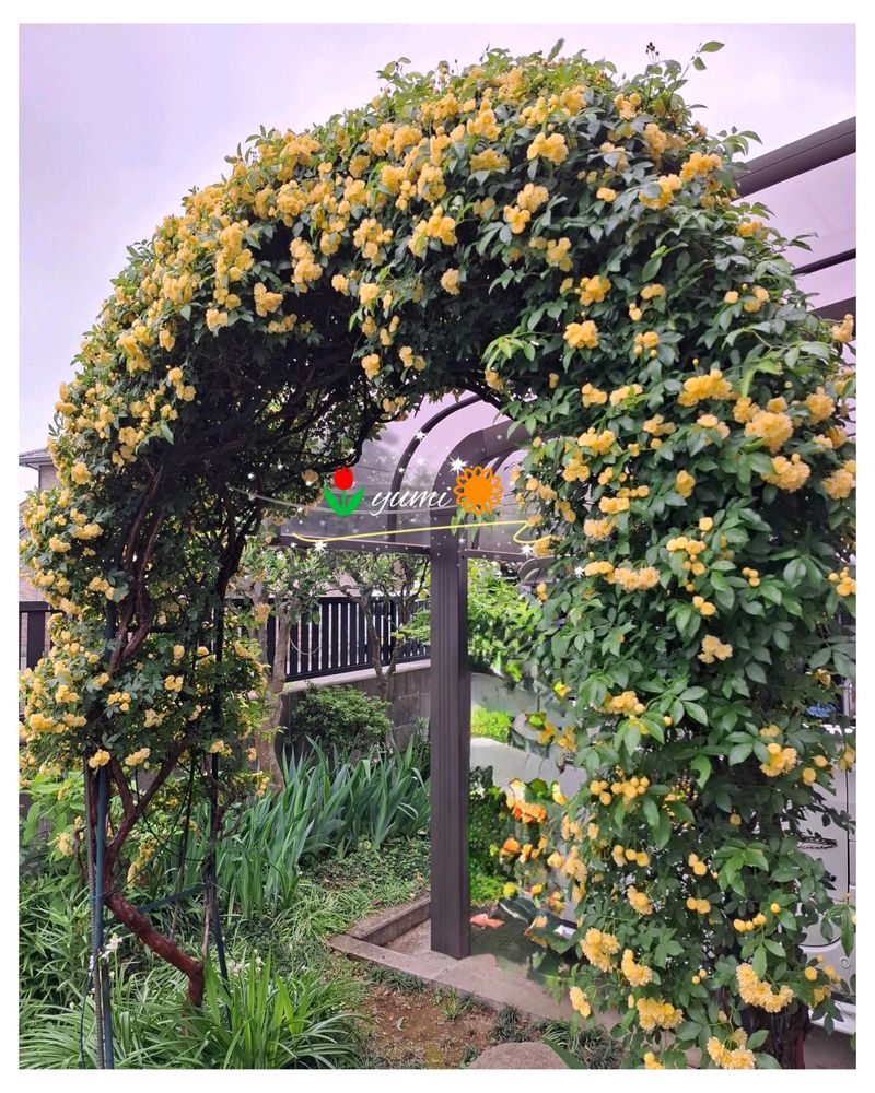 モッコウバラ、アーチにするの難しそうなのに凄いまとまっていて素敵ですね👏✨