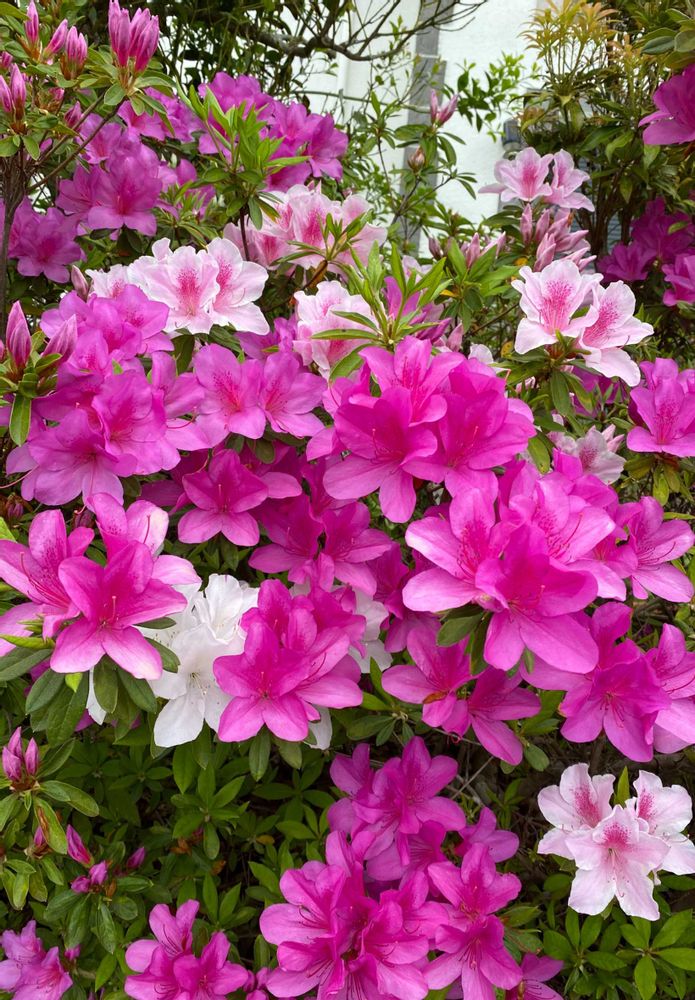ウォーキング🚶♂️🚶で通る大通りの中央分離帯(上⬆️のpic)に色とりどりのツツジが植えられていてとても綺麗に咲いています✨💕🎶