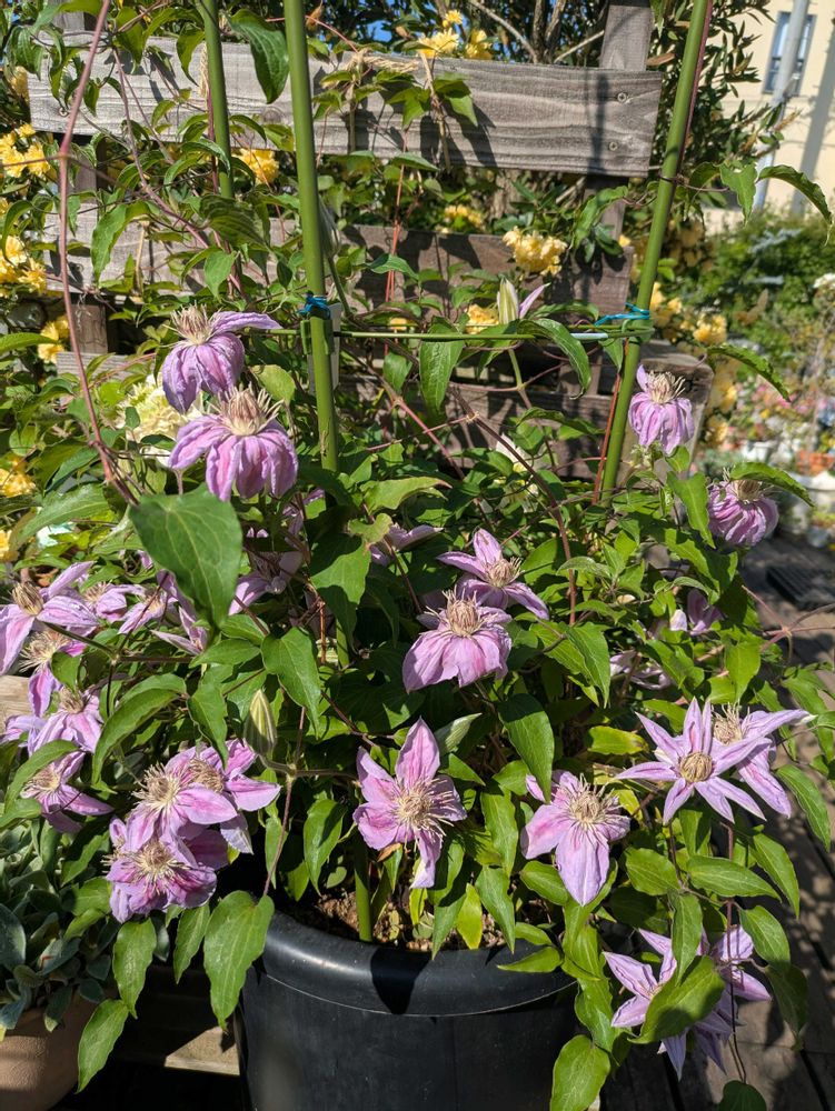 昨日咲いてなかったクレマチスが、一気に咲いたけどなんか怪しい、枯れるのかな。