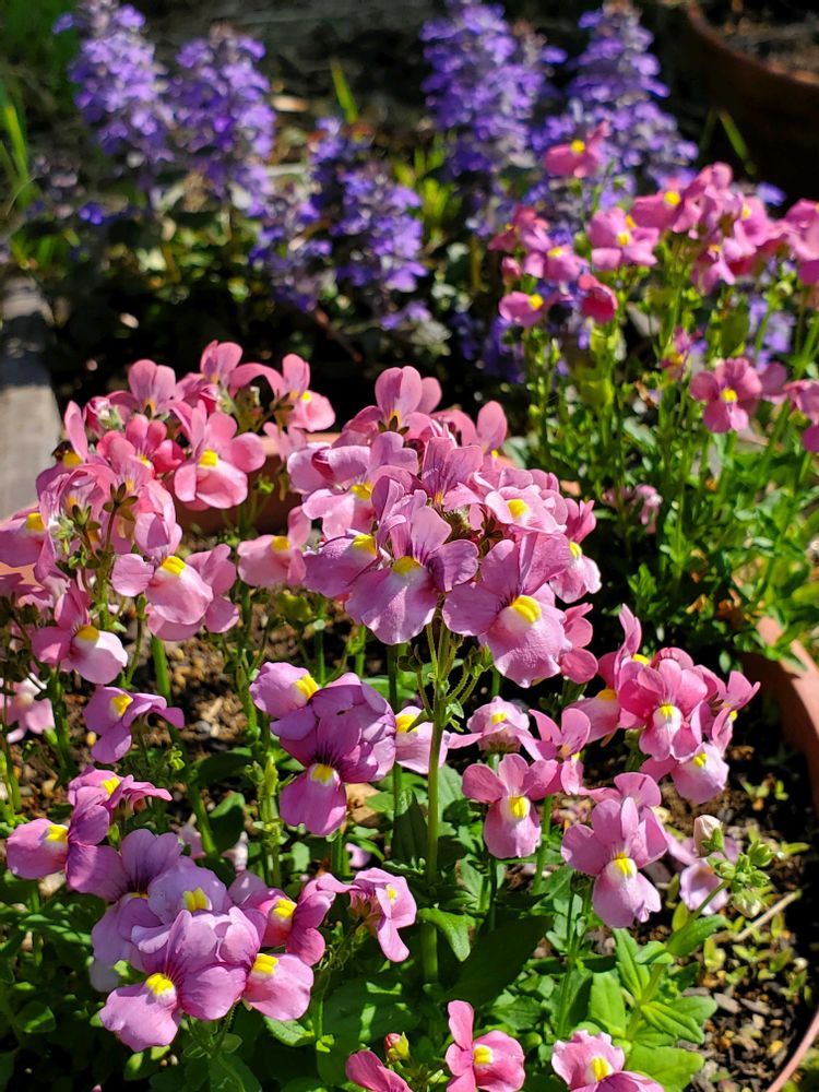 2️⃣零れ種からのネメシアと、バックにはアジュガが咲いています💗💜