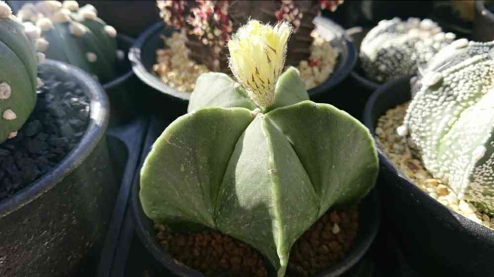 台風の影響で、避難させてて、昨日仕事から帰宅後に我が家の日照台へ戻していたら、碧瑠璃鸞鳳玉さんの花が咲いていて、日光が足りなかったせいか しぼみ始めてまして…😅